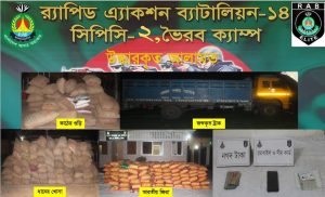 র্যাব জানায়, মঙ্গলবার (১৮ নভেম্বর) দিনগত রাত সাড়ে ১২টার দিকে ঢাকা-সিলেট মহাসড়কের সৈয়দ নজরুল ইসলাম সেতুর ভৈরব প্রান্তের নাটাল মোড় এলাকায় অভিযান চালায় র্যাব-১৪, ভৈরব ক্যাম্পের সদস্যরা।