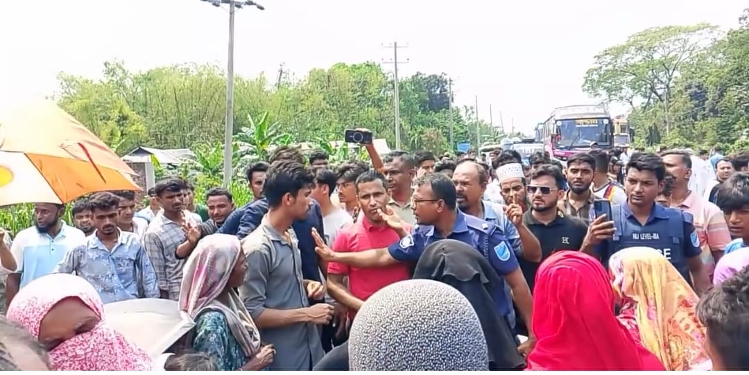 নরসিংদীর রায়পুরায় কৃষককে আটকের প্রতিবাদে মহাসড়ক অবরোধ