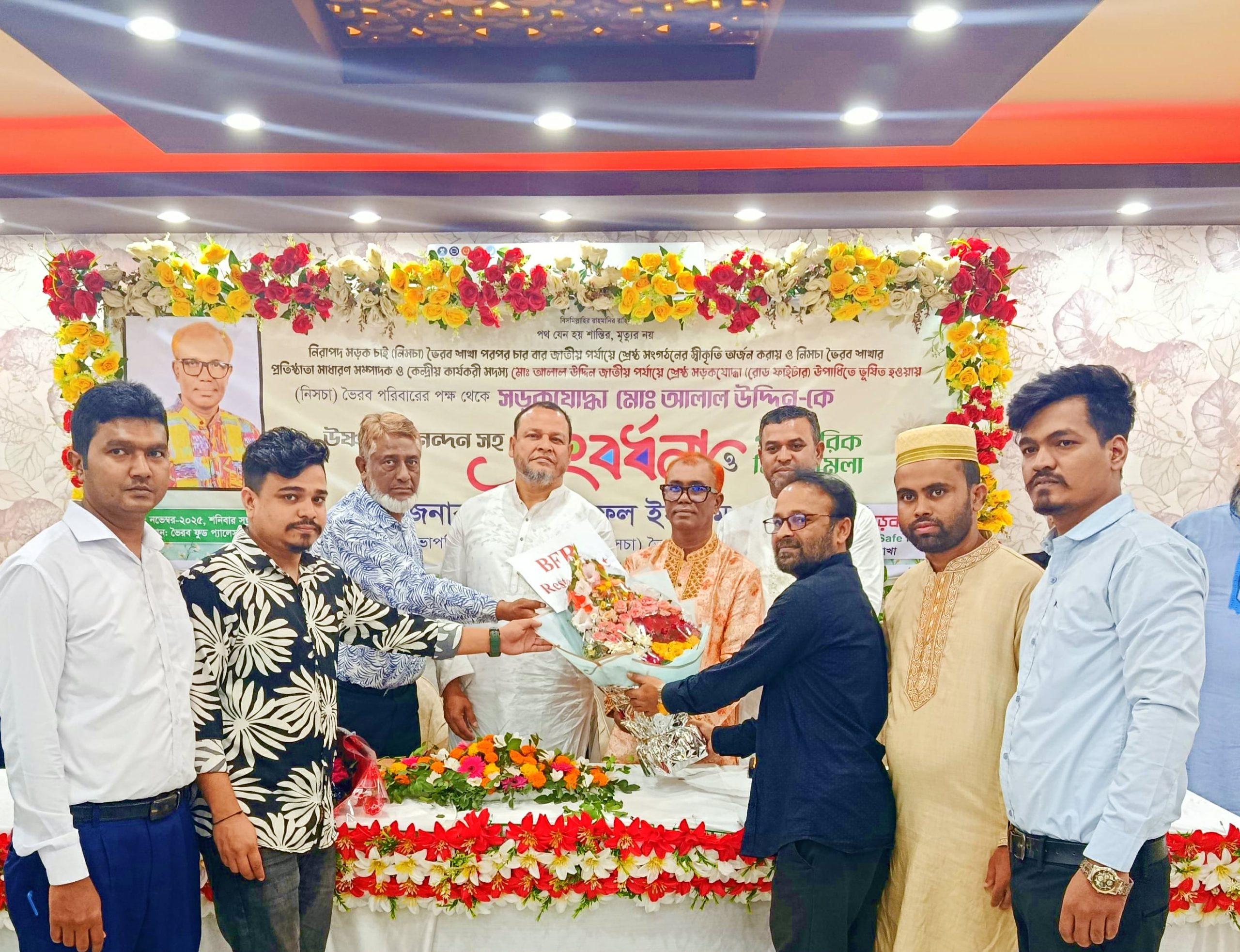 নিরাপদ সড়ক আন্দোলনের অক্লান্ত পথযোদ্ধা, নিসচা ভৈরব শাখার প্রতিষ্ঠাতা সাধারণ সম্পাদক ও কেন্দ্রীয় কার্যকরী সদস্য সাংবাদিক মোঃ আলাল উদ্দিনকে ‘দেশসেরা রোড ফাইটার’ উপাধি অর্জনের জন্য এক উষ্ণ সংবর্ধনা প্রদান করেছে নিসচা ভৈরব পরিবার। শনিবার (১৫ নভেম্বর ২০২৫) সন্ধ্যায় ভৈরব ফুড প্যালেস রেস্টুরেন্টে অত্যন্ত আনন্দঘন পরিবেশে অনুষ্ঠিত হয় এ সংবর্ধনা।