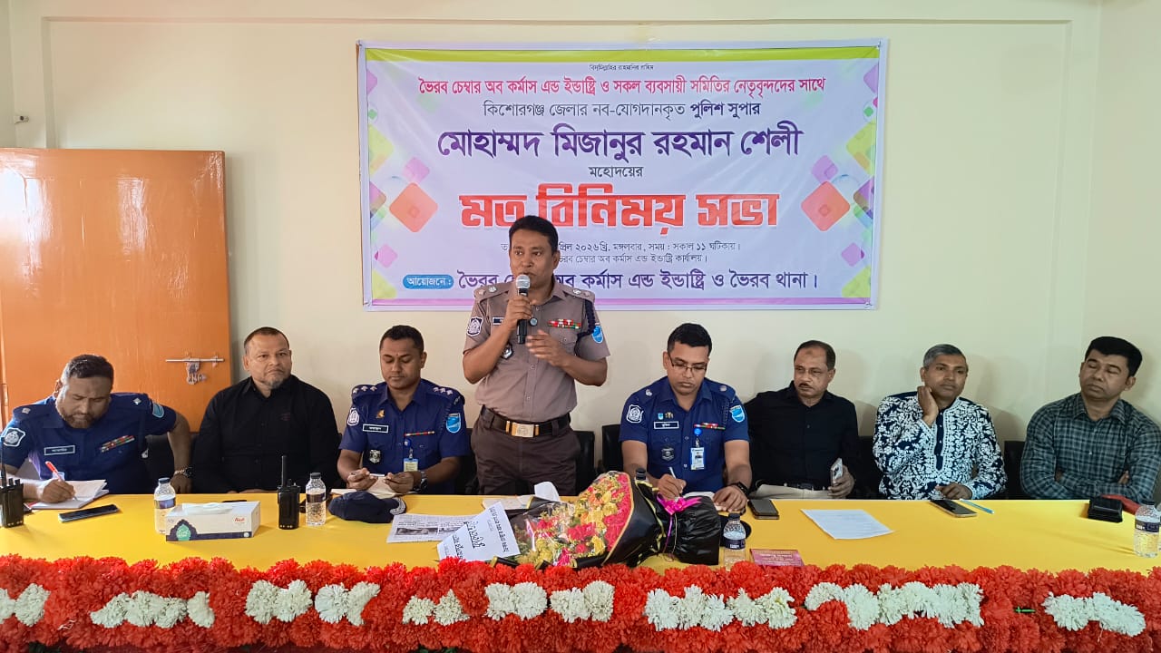 কিশোরগঞ্জ জেলার নবযোগদানকৃত পুলিশ সুপার মোহাম্মদ মিজানুর রহমান শেলী'র সাথে ভৈরবের ব্যবসায়ী নেতৃবৃন্দের এক মতবিনিময় সভা অনুষ্ঠিত হয়েছে। মঙ্গলবার (২৮ এপ্রিল ) দুপরে ভৈরব চেম্বার অব কমার্স এন্ড ইন্ডাস্ট্রি কার্যালয়ে এ সভার আয়োজন করা হয়।