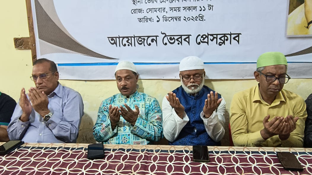 আজ সোমবার দুপুরে ভৈরব প্রেসক্লাবের আয়োজনে এই দোয়া ও আলোচনা সভা অনুষ্ঠিত হয়। এতে সাংবাদিক, রাজনীতিবিদ, ব্যবসায়ীসহ বিভিন্ন শ্রেণি-পেশার মানুষ অংশ নেন।